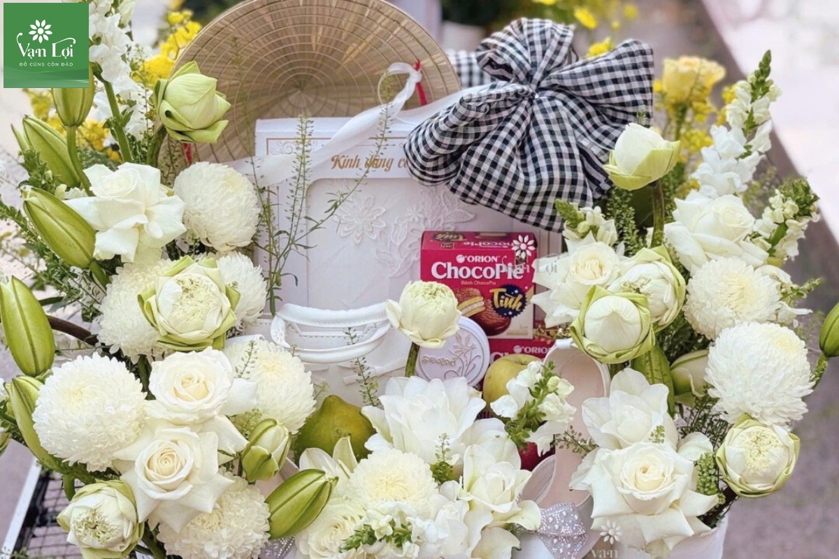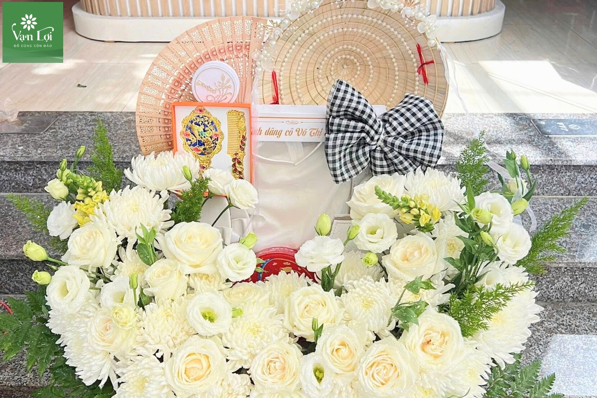 - Hoa tươi: Trong bất kỳ bài lễ cúng Cô Sáu Côn Đảo nào, hoa cúc trắng hoặc hoa hồng trắng là lựa chọn bắt buộc. Hoa phải còn nguyên nụ hoặc vừa chớm nở, không sử dụng hoa đông lạnh hay cánh hoa bị dập nát. Tại Vạn Lợi, hoa luôn được nhập mới mỗi ngày từ đất liền để đảm bảo độ tươi tắn nhất.