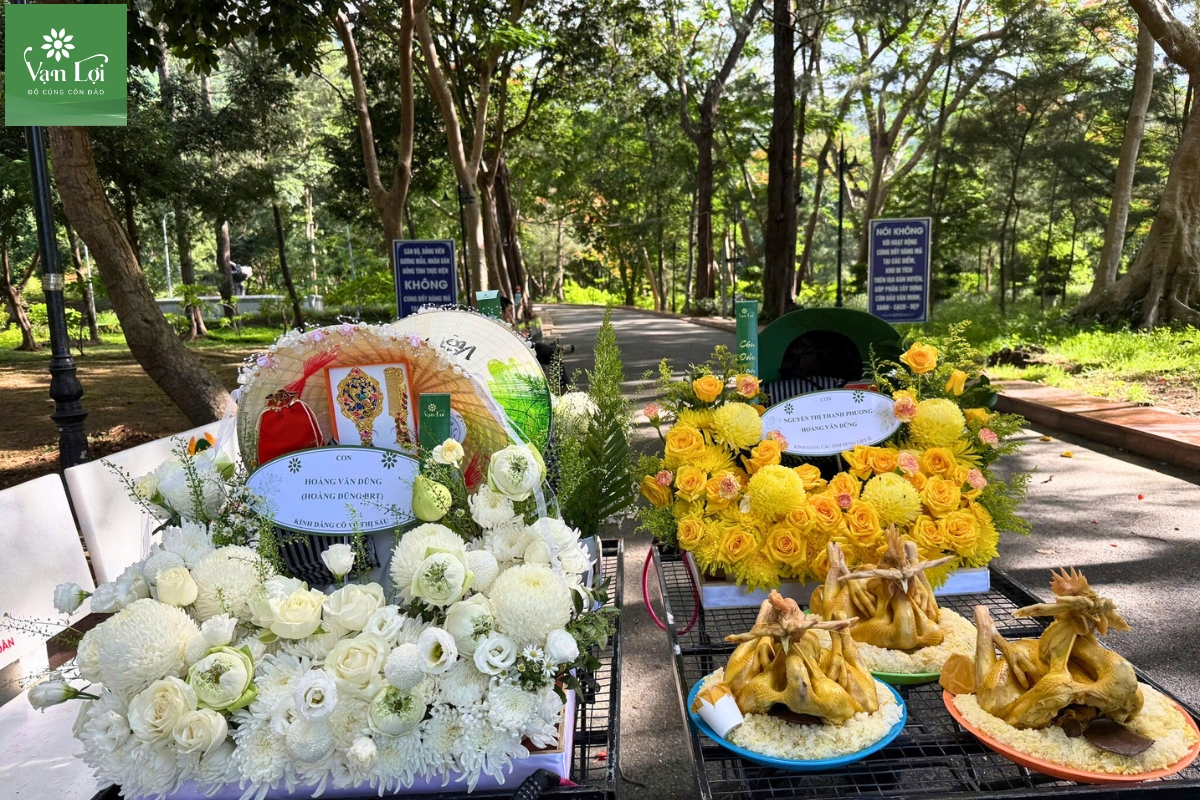 - Hỗ trợ tại điểm lễ: Nhân viên Vạn Lợi hỗ trợ sắp xếp mâm lễ tại điểm viếng nếu khách có yêu cầu, đảm bảo mâm lễ trang nghiêm nhất.